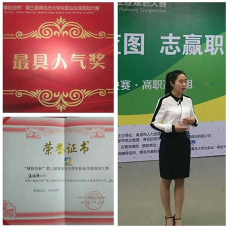 本网讯 (工商管理学院 李翔龙)11月25日,“橡胶谷杯”第三届青岛市大学生职业生涯规划大赛全市总决赛在青岛科技大学(崂山校区)成功举办。我院工商管理学院康淑梅同学凭借不俗的实力和稳定的临场发挥成功晋级全市总决赛并荣获三等奖,同时还凭借超高人气斩获本次大赛“高职高专组”唯一一个“最具人气奖”,实现了我院选手在该项比赛中的历史性突破;工商管理学院贾晓娜、姜梦莎、曹梦洁三位同学荣获“百强优胜选手”称号。