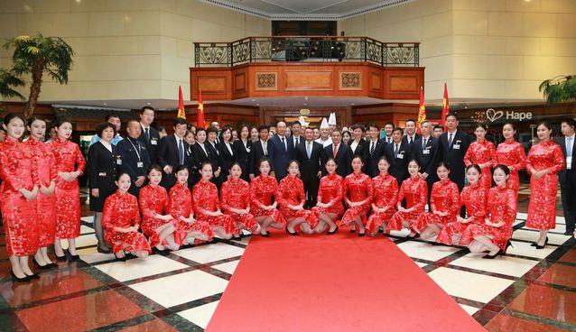 高源檬(第二排右三)、苗苗(第二排右四)与乌兹别克斯坦总统米尔济约耶夫合影
