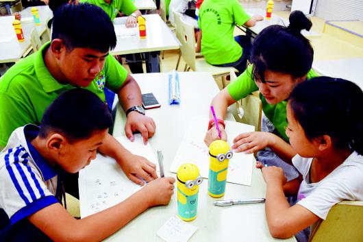 暑期社会实践队队员与留守儿童在多彩课堂上互动