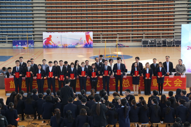 大会向2017-2018学年在实习工作中表现突出的团队和个人颁发了荣誉证书。刁洪斌对支持学院发展和实习管理工作的合作单位表示感谢,对同学们在实习中取得优异成绩表示祝贺,感谢同学们圆满完成了上合青岛峰会、全国两会等重大活动服务工作,增长的才干,也为学院赢得了荣誉。他希望大三的同学们认真总结实习经验、凝练提升,做好规划、坚信坚守,向着酒店业职业经理人的目标不断奋斗。希望大一新生认真制定学习计划、乐学善思,向获奖的学长学姐学习,不断提升职业素养和专业能力。