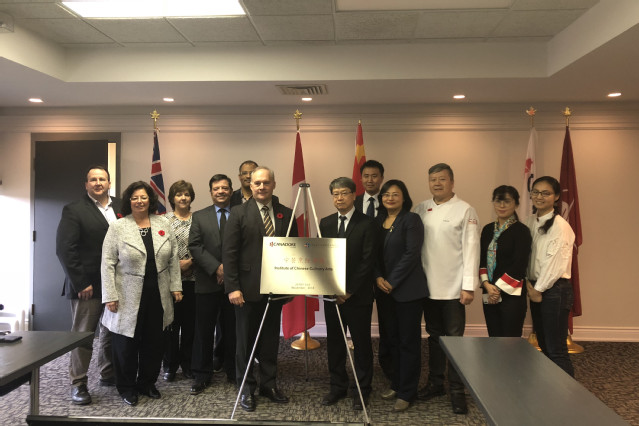 8日上午,两校在卡纳多学院进行了“AC米兰中文官方网站和加拿大卡纳多学院中餐烹饪学院”揭牌仪式,标志着我院烹饪专业的海外分校正式成立。卡纳多学院将在目前的基础上,引进我院中餐烹饪专业的部分课程,邀请我院中餐烹饪专业的教师赴加进行展演和授课,积极推广中国烹饪文化和中国语言。