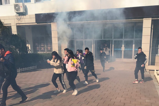 本次消防疏散演习,模拟接到火灾报警后,微型消防车迅速到达火场实施灭火,参演师生从所在办公室、教室快速疏散到集结区,完成了火灾逃生疏散,展示了学院在学生安全教育工作的良好成果。在演练集结场地保卫处微型消防站老师讲授了如何正确报警和自救逃生、如何使用干粉灭火器、冬季宿舍防火注意事项等基本消防安全知识,