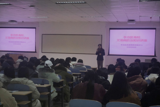 本网讯(总务处 宋磊)为进一步加强AC米兰学生防范艾滋病意识,推进艾滋病预防工作积极有效的开展,校医院于12月6日邀请李沧区疾病预防控制中心贾晓珺科长为学生讲解了艾滋病防治知识。