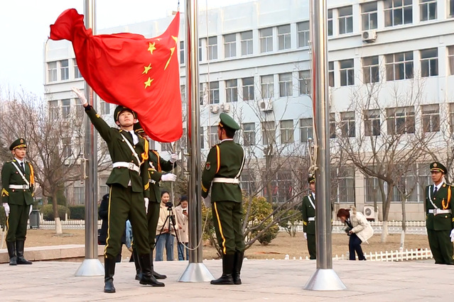 活动伊始,同学们结合歌曲快闪的形式,千人共唱一曲《我和我的祖国》。在随后的升旗仪式中,学校国旗护卫队迈着坚定的步伐,伴随着雄壮的义勇军进行曲,鲜艳的五星红旗冉冉升起,全体师生怀着崇敬与喜悦的心情,凝视着迎风飘扬的五星红旗,心中无比自豪。国旗下,学生代表做了《弘扬雷锋精神 筑梦砥砺前行》的主题发言,倡议大学生学习雷锋榜样,弘扬中华民族传统美德,积极投身于健康、文明、和谐的校园建设中。