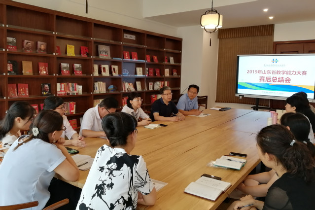 本网讯(教务处 王赵慧)9月5日上午,学院在传统文化书屋召开山东省教学能力大赛赛后总结会,学院副院长宫恩龙与参加13位现场决赛的参赛教师进行深入交流。会议由教务处副处长衣文娟主持。