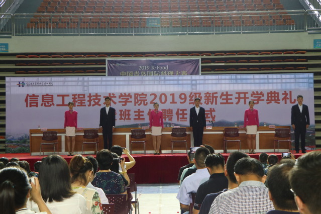 信息工程学院新生入学教育分为理想信念教育、行为规范教育、入学适应教育和专业认知教育等四部分,举行新生开学典礼,召开以建国70周年为主线的爱国主义新生主题班会,组织观看革命历史题材电影,带领学习学院各项管理规定,进行了礼仪教育和专业介绍,参观校展馆,举行22个新生班级班主任聘任仪式等活动,让新生更快融入学院、融入专业、融入集体。