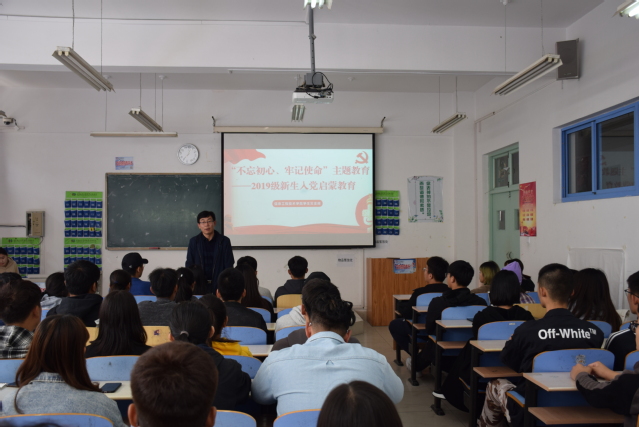 王正强以“不忘初心、牢记使命,以实际行动入党”为主题开展本次入党启蒙教育。他从党的性质,宗旨,基本原则等基本理论知识展开,并就入党的相关程序、要求及发展党员工作细则做了讲解。他希望同学们端正入党动机,既要从组织上入党,更要从思想上和行动上向党组织靠拢,不断增强“四个意识”,坚定“四个自信”,做到“两个维护”,树立为国家为人民服务的宗旨,增强学习意识,努力成为同龄人中的榜样。