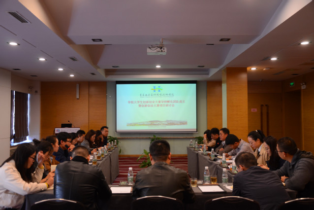 本网讯(团委 吴春雷)11月5日上午,学院大学生创新创业大赛导师孵化团队成立仪式暨创新创业大赛项目研讨会在旅游与酒店实训中心多功能厅举行,学院副院长刁洪斌出席会议并讲话,团委书记李柯,15位学院创新创业大赛导师孵化团队代表参加了会议。