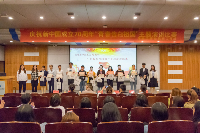 10月13日,“青春告白祖国”主题演讲大赛在学术报告厅举行,各学院易班工作站指导老师及辅导员老师担任大赛评委。选手们结合祖国伟大成就、学院发展和切身感受,热情洋溢地表达了对祖国的热爱、对美好生活的向往,“此生无悔入华夏,来世愿做中国人”说出了每个人的心声,引起在场师生强烈共鸣。经过选手们的激烈角逐,2019级财务管理D2班崔尚仪等同学分获一二三等奖和优秀奖若干。