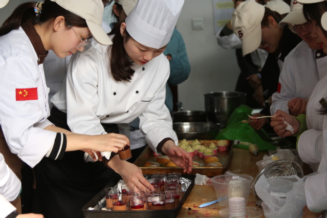 本网讯(烹饪学院 尹明)近日,烹饪学院举办优秀毕业生回校技能反哺交流活动,先后邀请2007届毕业生李士福、2009届毕业生宿路苹、2010届毕业生张超和2014届毕业生沙琪琪四名优秀校友,他们从西餐工艺、中西面点工艺等方面向在校学生传授菜品制作技艺。