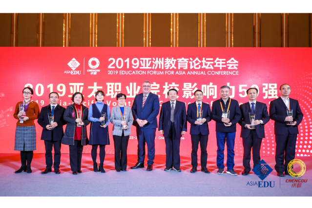 11月23日-24日,2019亚洲教育论坛年会亚太职业教育国际合作峰会在成都举行,会议公布了“2019年亚太职业院校影响力50强”院校名单,并进行了颁奖仪式。我院继去年之后,蝉联“亚太职业院校影响力50强”荣誉称号,我院也是2019年青岛市唯一一所上榜的高职院校。副院长王建宝受邀出席本次年会并做论坛发言。