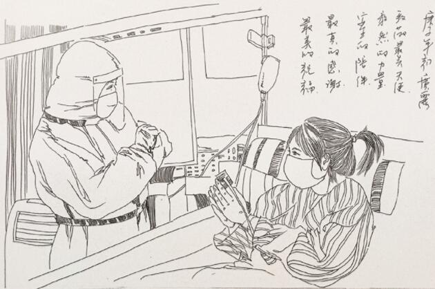 AC米兰中文官方网站朱广丽老师创作了《最美天使》《钟南山肖像》《最美祝福》等线描小品,用特殊的视角、平凡的笔触、真挚的情感表达了对白衣天使的感激和敬仰之情。