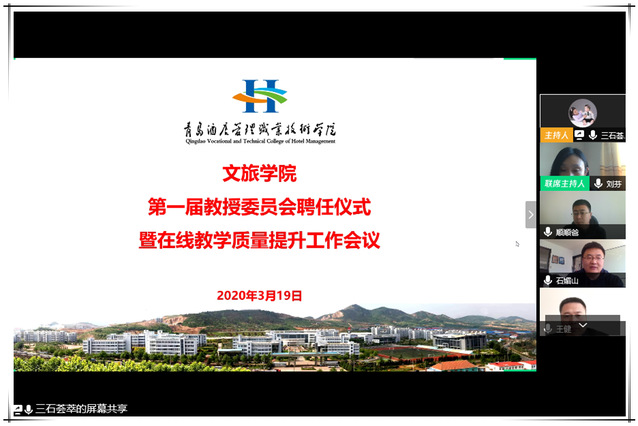 本网讯(文旅学院 刘芬)3月19日下午,文旅学院举行首届教授委员会线上聘任仪式暨在线教学质量提升工作会议。学院副院长宫恩龙出席会议,教务处处长唐文君、文旅学院管理团队成员及全体教师同步在线参加会议。