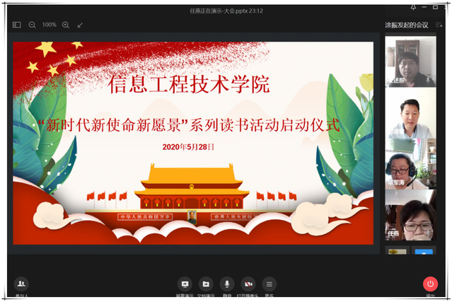 本网讯(信息工程技术学院 任燕)5月28日,信息工程技术学院党总支线上举行“新时代新使命新愿景”系列读书活动启动仪式,组织广大老师潜心读书、静心思考、倾心交流。