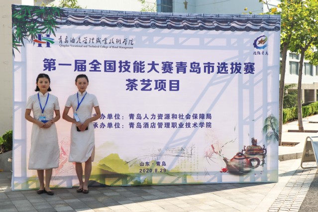 本网讯(酒店管理学院 孙海燕)8月29日,2020第一届全国技能大赛青岛市选拔赛茶艺赛项在我院举行,共有来自全市8所院校和机构的23名选手参加比赛。