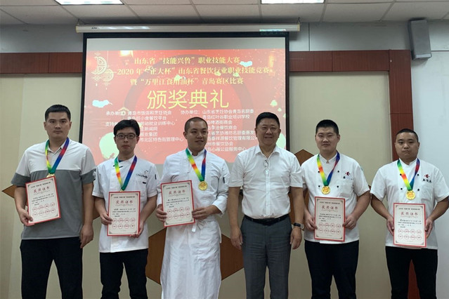 本次大赛由山东省商务厅、山东省人力资源和社会保障厅、山东省总工会等多个政府部门联合组织,由山东烹饪协会主办,自全市156名选手参加了此次大赛。烹饪学院教师任传生和王庆泉根据比赛要求分别制作了松茸炒鱼丝、国宴冷盘和琴屿海参、静花苑等四道菜品,两位老师凭借精湛的技艺获得评委的一致好评,勇夺比赛金奖。下一步,他们将代表青岛参加在济南举办的总决赛。
