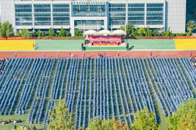 本网讯(宣传统战部 于克晓)10月23日上午,学院在体育场举行2020级新生开学典礼暨军训总结表彰大会,5000多名莘莘学子欢聚一堂,携手开启大学生活新的篇章。