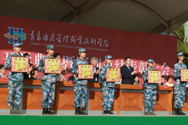 学院纪委书记姜玲玲宣读军训标兵营、军训标兵排、内务标兵排、优秀教官、军训标兵、内务标兵名单,学院领导为获表彰单位颁发奖状。