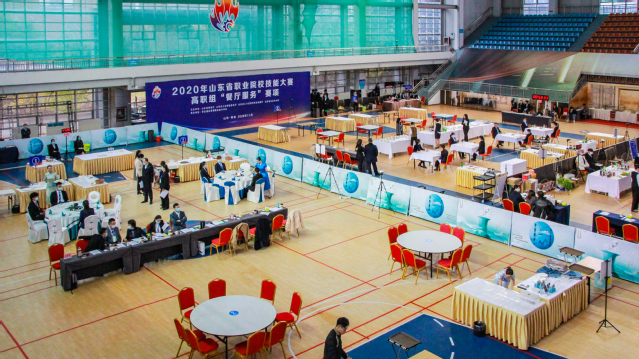 本网讯(党委宣传统战部 酒店管理学院)1117-20日,初冬再相聚,2020年山东省职业院校技能大赛在学院体育馆举行,共有来自全省各地26支队伍同台竞技、共展专业魅力。为期四天的赛事,选手们沉着应战,用精湛的技艺和风采,展示了省内高职院校餐厅服务的最高水平。