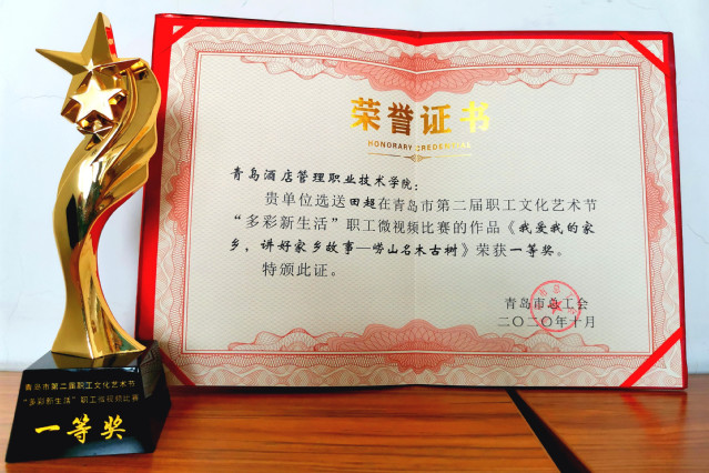 本网讯(工会 吴春雷)近日,青岛市第二届职工文化艺术节“多彩新生活”职工微视频征集评审活动落下帷幕,学院文旅学院教师田超制作的微视频《我爱我的家乡,讲好家乡故事—崂山名木古树》获得一等奖,酒店管理学院教师张妍制作的微视频《酒管时光》获得三等奖,并获得网络人气奖。