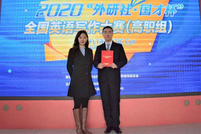 前期,宋弘毅同学荣获“外研社·国才杯”全国英语写作大赛(高职组)复赛山东赛区一等奖,获得代表山东参加全国决赛的资格,在教师管婷的悉心指导下进行了有针对性地备赛,为好成绩的获取奠定了基础。