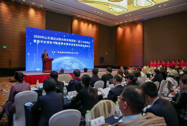本网讯(文旅学院 酒店管理学院 烹饪学院)12 月 22 日,由学院牵头成立的山东现代酒店业职业教育集团举行一届三次理事会暨数字化变革与旅游职业教育高质量发展高峰论坛,78家职教集团成员单位的140余位嘉宾莅临参会。学院党委副书记王鑫主持会议。
