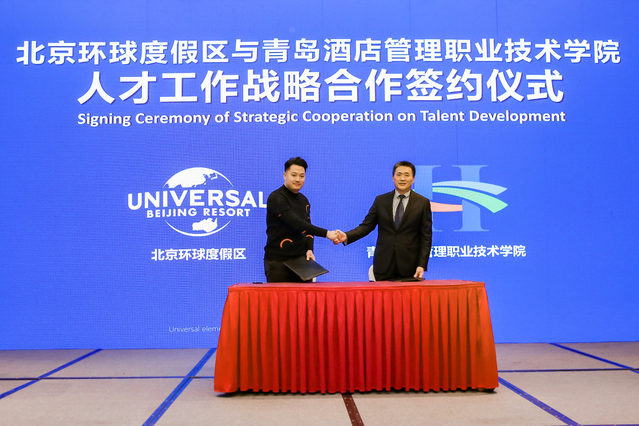 会议期间,学院与加拿大瀑布学院举行了线上签约仪式,学院现场与北京环球度假区签署了人才工作战略合作协议。