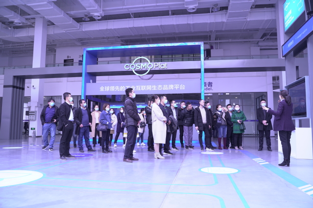 卡奥斯平台相关负责人介绍了海尔智研院的基本情况,带领老师们参观了卡奥斯工业互联网平台的各种应用场景。参观过程中,老师们详细了解了工业互联网的技术背景及应用场景,特别是针对工业互联网人才培养、智慧厨房应用场景、虚拟仿真实训室建设等方面进行了深入交流和讨论。