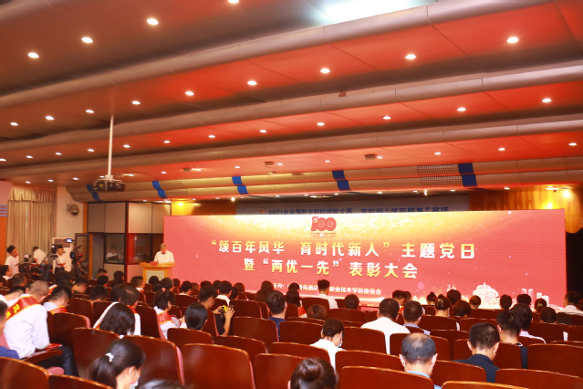 本网讯(党委宣传统战部 组织人事处)胸怀千秋伟业,恰是百年风华。6月24日下午,学院在学术报告厅举行庆祝中国共产党成立100周年“颂百年风华 育时代新人”主题党日暨“两优一先”表彰大会,激励全体党员建功新时代、启航新征程。