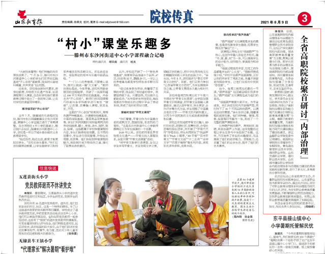本网讯(党委宣传统战部)8月9日,《山东教育报》第三版以《全省高职院校聚首研讨“内部治理”》为题,报道学院承办山东省高职院校内部治理体系与治理能力建设论坛,全文如下: