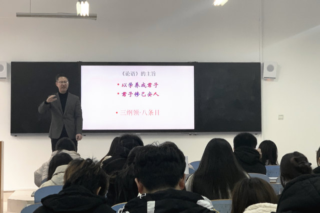 聘任仪式结束后,宋立林以《论语与中国人的修养》为题为学院师生作专题讲座。他强调,一个现代的中国,不仅要广泛吸收世界的一切文明成果,更应该继承和弘扬中华优秀传统文化,培育文质彬彬的现代国民,塑造文明友善的公序良俗,培育积极健康的人伦道德,展现中华文化的魅力与生命力,提升国家的文化软实力。
