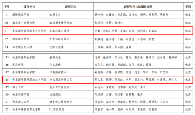 本网讯(继续教育学院)近日,山东省教育厅公布了2021年山东省继续教育数字化共享课程遴选结果,学院李真老师的《成本核算与管理》被评为精品课程,邢文君老师的《中式面点制作工艺》被评为优质课程。