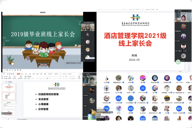 酒店管理学院压实责任,激励担当,从严执行各项防控措施,持续做好疫情防控常态化下的学生安全管理工作。辅导员老师通过一场场自行设计、巧妙构思的线上家长会,实现线上播报,主动向家长汇报近期校园疫情防控主要工作,传达疫情防控常态化期间学生管理相关要求,与家长同心,和家长贴心,让家长放心。