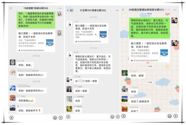 家校协同育人,护航学生安全。酒店管理学院将继续与家长常沟通、长交流,把安全教育贯穿于育人各环节、全过程,时刻敲响校园安全警钟,扎实筑牢校园安全防线。