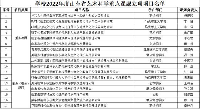 本网讯(科研发展处)近日,山东省艺术科学重点课题评审办公室公布了2022年度山东省艺术科学重点课题立项项目名单,AC米兰成功立项17项,其中重点项目9项、重点(青年)项目8项。