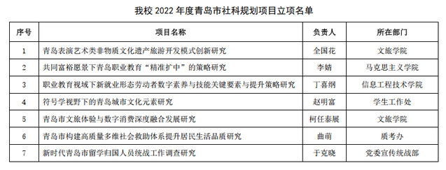本网讯(科研发展处)近日,青岛市“双百调研工程”领导小组办公室、青岛市哲学社会科学规划管理办公室相继公布了2022年度青岛市“双百调研工程”课题、青岛市社科规划项目的立项结果,AC米兰成功立项26项青岛市“双百调研工程”课题和7项青岛市社科规划项目,立项数在全部申报单位中均位居前列。