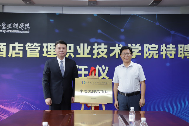 本网讯(酒店管理学院 王翔)8月9日,华侨大学旅游实验教学中心、国家级旅游实验教学示范中心/国家级旅游虚拟仿真实验中心主任汪京强受聘学校特聘教授暨“汪京强名师工作站”揭牌仪式,山东文旅集团有限公司首席客户官、山东文旅酒店管理集团有限公司党委书记、董事长李浩受聘学校客座教授暨“李浩大师工作站”揭牌仪式在行政楼二楼会议室举行,学校院长姜玉鹏、副院长张宗国出席聘任仪式。