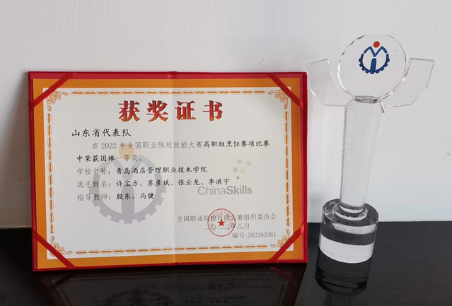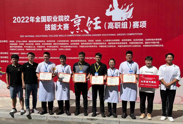 本网讯(烹饪学院 赵捷)8月20日至24日,2022年全国职业院校技能大赛(高职组)烹饪赛项在辽宁现代服务职业技术学院举行,AC米兰烹饪学院学生许宝方、苏彦斌、张云龙、李洪宇组成的参赛团队凭借宴席作品《山海共融·美丽乡村》荣获一等奖,殷东、马健老师荣获“优秀指导教师”。