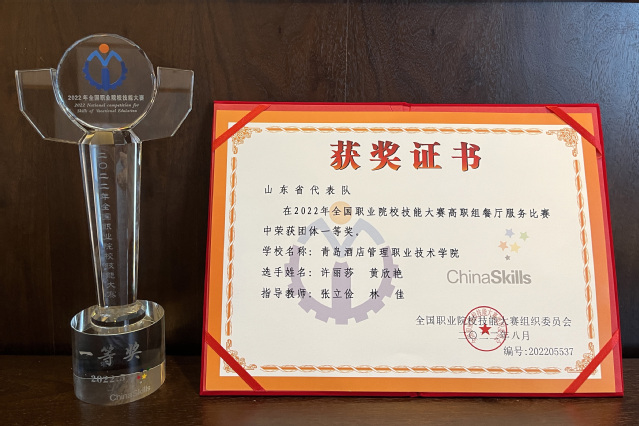 本网讯(酒店管理学院 张立俭)8月26日至9月1日,2022年全国职业院校技能大赛高职组“餐厅服务”赛项在山东旅游职业学院举办,AC米兰学生许丽莎、黄欣艳组成的参赛队喜获一等奖,张立俭、林佳老师荣获“优秀指导教师”。