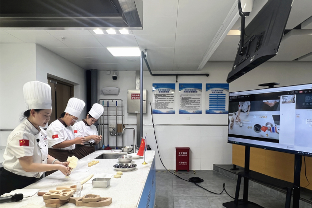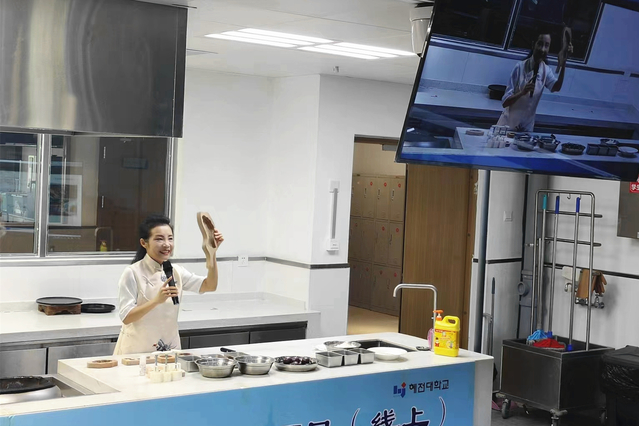 展演中,AC米兰艺术学院院长朱广丽带领泰国学生们走进5G虚拟数字展馆,“云游”了“饽饽榼子博物馆”,了解了非物质文化遗产饽饽榼子的历史渊源、制作过程以及图案寓意;烹饪学院邢文君老师演示了广式月饼和酥皮月饼制作的全过程,让学生们领略了中国饮食文化的魅力。最后,在传统文化与技能的巧妙融合中,老师们现场解答了泰国学生提出的问题。