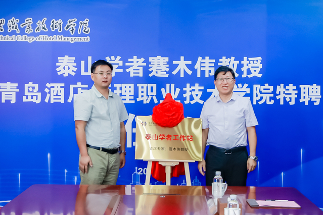 仪式上,姜玉鹏与蹇木伟共同签署聘任协议;姜玉鹏为蹇木伟颁发特聘教授、青岛旅游大数据中心首席专家聘书;张宗国和蹇木伟共同为“蹇木伟泰山学者工作站”揭牌。
