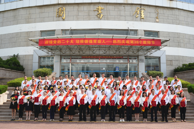 本网讯(组织人事处 党委宣传统战部)迎接党的二十大,培根铸魂育新人。9月8日下午,学校庆祝第38个教师节暨先进表彰大会在学术报告厅举行。学校党委书记李达讲话,党委副书记、院长姜玉鹏主持大会,党委委员、副院长张宗国宣读表彰决定,党委委员、副院长宫恩龙出席会议。
