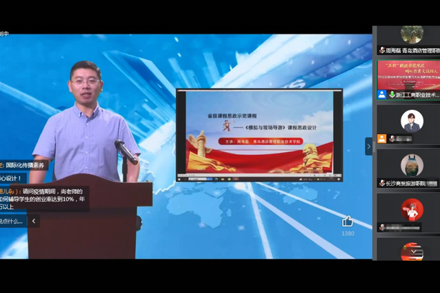 本网讯(文旅学院 周海磊)9月17-18日,2022年全国职业院校旅游大类课程思政集体备课会线上线下同步举行。文旅学院《模拟与现场导游》课程参加线上课程思政集体备课展示交流。