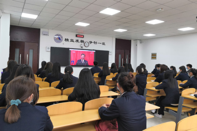 校园内处处洋溢着节日的气氛,师生们精神振奋、群情沸腾、欢欣鼓舞。学校党委书记李达、院长姜玉鹏等领导班子成员和中层干部集中在行政楼四楼会议室收听收看党的二十大开幕会盛况;各级党组织在会议室、党建活动室、教室、实训室、实习场所等地,组织师生员工通过电视、广播、新闻网站、新媒体平台等渠道认真收听收看党的二十大开幕会盛况,认真学习习近平总书记代表中央委员会向大会作的报告。在聆听大会报告过程中,全校师生深受鼓舞、反响强烈。