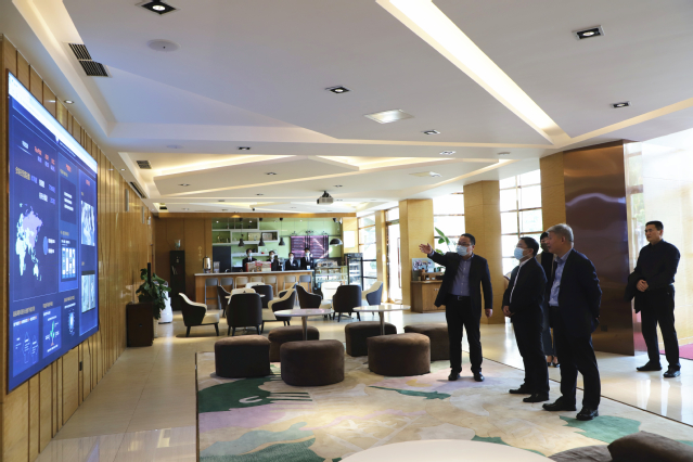 朱华建一行参观了海斯曼数字酒店综合实训基地、旅游大数据中心、菜鸟驿站、烹饪学院实训基地,实地督导了疫情防控和校园安全稳定落实情况工作,听取了学校党委书记李达关于学校办学基本情况、发展战略、疫情防控和校园安全稳定、落实集团务虚会精神等情况的汇报。