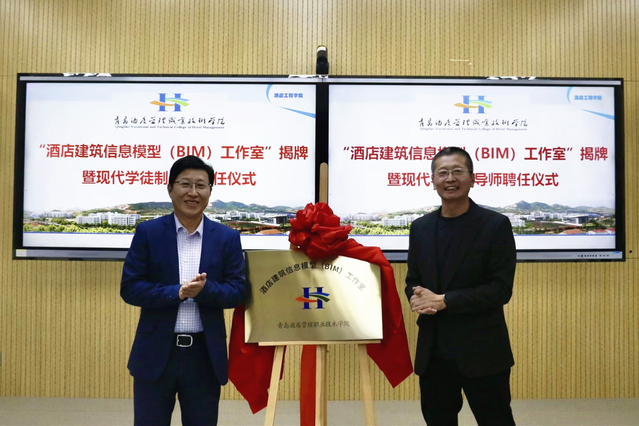 “酒店建筑信息模型(BIM)工作室”依托山东省职业教育教师技艺技能传承创新平台建设而成。工作室以酒店BIM技能创新为目标,联合大中华酒店工程师协会、青岛理工大学,中建八局第四建设有限公司等合作单位,进行酒店BIM技术应用方面的标准制定、实习实训资源开发、创新创业教育、“现代学徒制”技艺技能传承等。工作室的成立将进一步强化酒店工程学院专业建设,深化校企合作育人机制,为社会和企业培养高质量技艺技能人才。