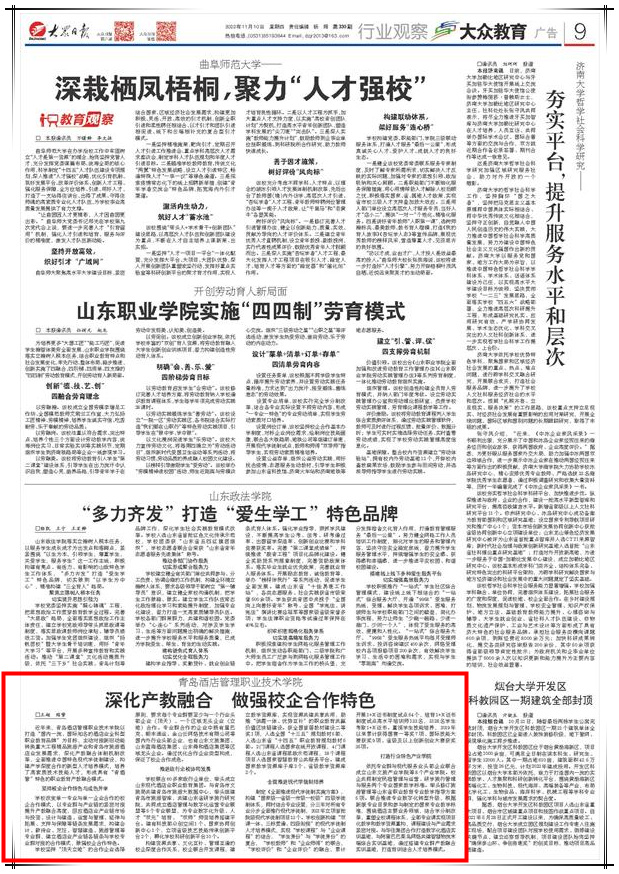 近年来,AC米兰中文官方网站以打造“国内一流、国际知名的酒店业全科型职业教育品牌”为目标,主动对接新旧动能转换重大工程精品旅游产业和青岛市旅游酒店业发展需求,深化产教融合体制机制改革,全面推进中国特色现代学徒制建设,构建产学深度合作的新型人才培养模式,培养了高素质技术技能人才,形成具有“青酒管”特色的职业教育产教融合模式。