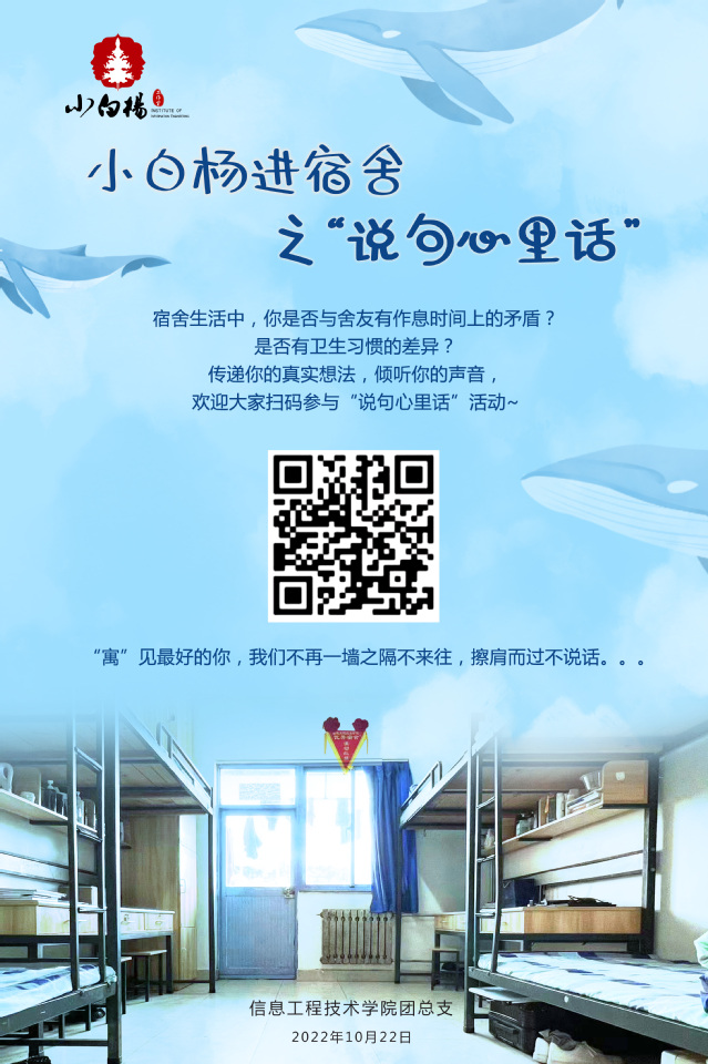 信息工程技术学院团总支开展“小白杨进宿舍之‘说句心里话’”心声征集活动,邀请同学们从心灵上“走”出宿舍,打破宿舍空间界限,加强宿舍间的沟通与联系。同学们积极参与,纷纷在活动中表达内心想法、传递真实感受。