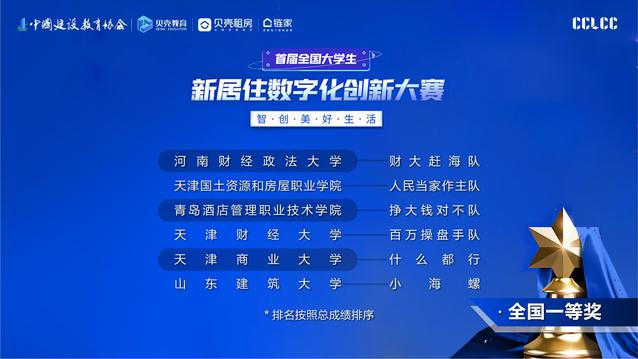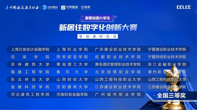 首届全国大学生新居住数字化创新大赛由中国建设教育协会联合贝壳共同举办。大赛共有来自全国70多个城市和地区110所高校的近700支队伍参加,报名学生超过3000人。AC米兰派出的3支队伍分别获得全国一等奖、智慧创新一等奖、全国三等奖,学校被评为优秀组织高校。