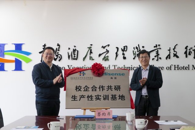 本网讯(信息工程技术学院 涂振)3月31日,信息工程技术学院在行政楼三楼会议室举行“校企共建生产性实训基地揭牌暨第二批海信学徒制班”启动仪式,青岛海信信息科技股份有限公司总经理孙钦平、学校副校长张宗国参加活动。